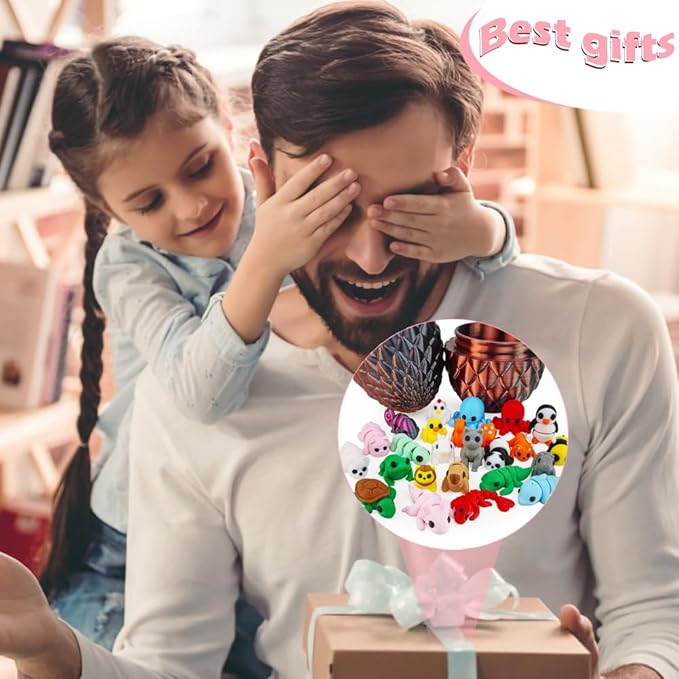 25 pcs Mini 3D Printed Animal Figurines Set with Dragon Egg: Articulated, Flexible, and Exquisitely Cute Fidget Toys for Play and Display for Valentine's Day, Easter, Bithday