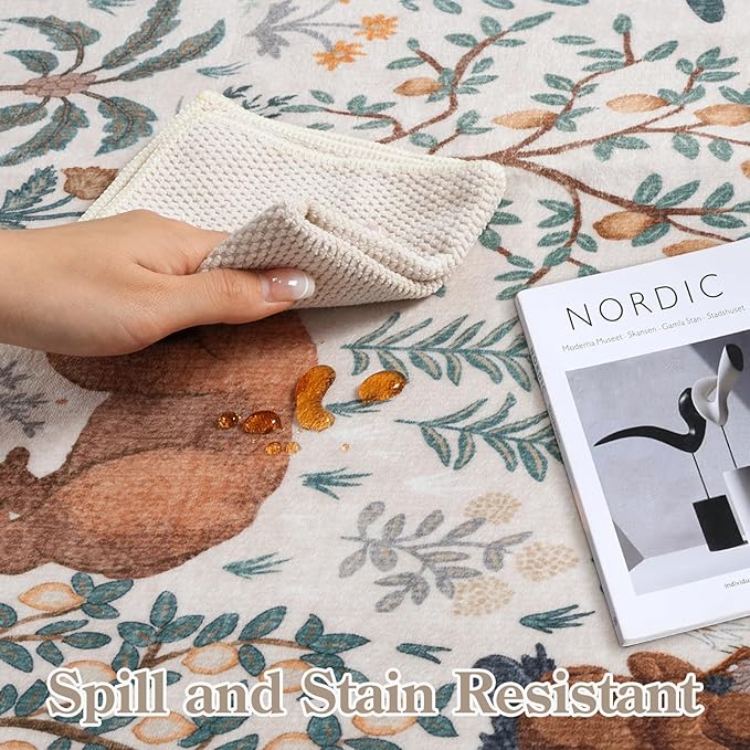 - Non-Slip & Ultra-Thin: The skid-resistant TPE backing can keep the rugs in place effectively, suitable for households with children, pets, or messy hobbies. This rug is ultra-thin, allowing it to be easily placed under furniture