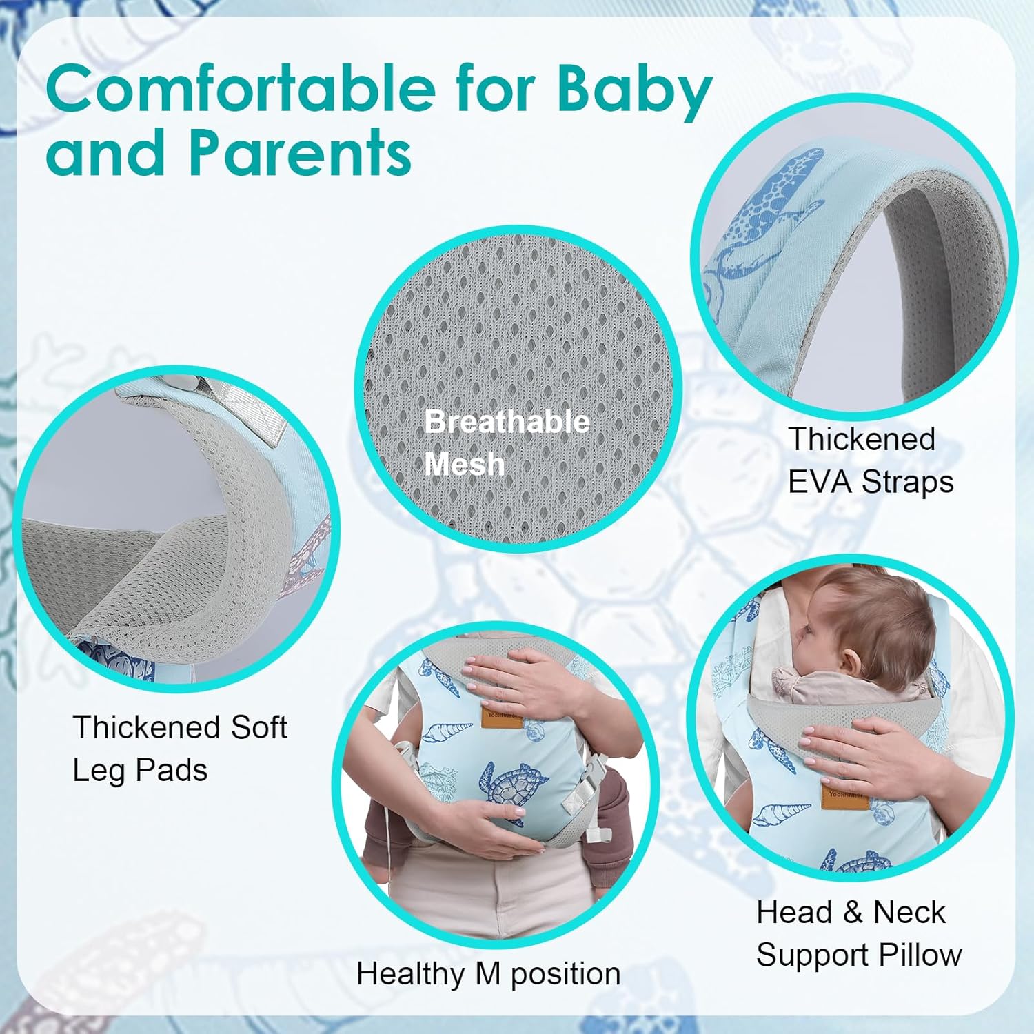 - Comfortable & Safe: This newborn carrier is made of high quality polyester fiber, soft and durable, the scientific carrier structure places baby's legs in the ergonomic natural "M” position to ensure the healthy development of baby's hips and spine.Soft legs protective pads and head support pads suitable for toddlers 1-3