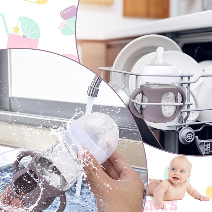 - Comfortably Use of Bottles - The fashion design silicone sleeve for baby bottles help grip for mom and also helps baby hold his bottle when it comes time for them to hold it . These bottle handles can be used for clean by dishwashers ,easy to clean.The silicone sleeve for avent bottle comes in cute colors and an adorable little cut out, so that you can easy to know amount of milk left