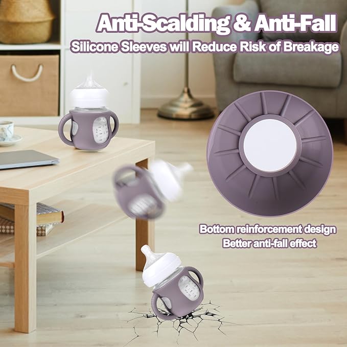 - Unique Designed for Baby Bottles - The silicone sleeves with handle for Avent Baby Bottles can against drop down,bumps and scratches. These are a must product for using glass bottles. They provide a more sturdy protection for glass baby bottle from breaking if dropped, which also unique design shape make it easier to grip and hold