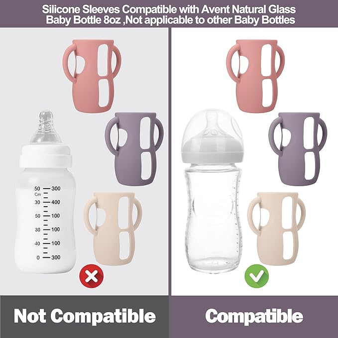 - The Tips: The baby bottle silicone sleeve only compatible with Philips AVENT Glass Natural Baby Bottle 8 oz, (Other products cannot be adapted)