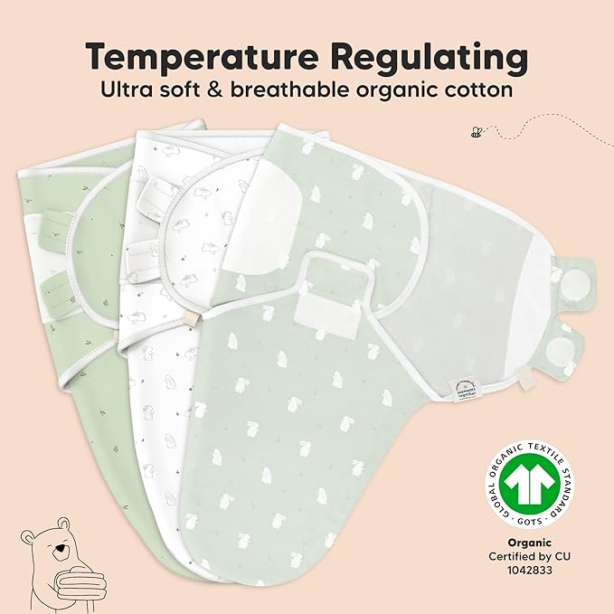 3-Pack Organic Baby Swaddle Sleep Sacks - Swaddles for Newborns, Infant 0-3 Months, Baby Girls, Boys, Soft & Snug Newborn Sleep Sack, Nursery Swaddling Blankets (Bunnies, XS)
