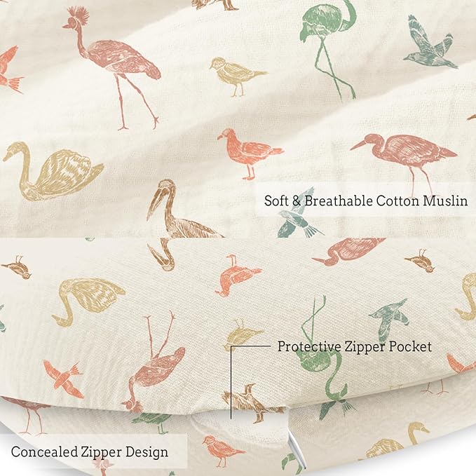 Little Grape Land Nursing Pillow Soft 100% Cotton Breastfeeding Pillow with Breathable Muslin Removable Cover, Wetland Wings Breast Feeding Pillows for Babies 0-12 Months with Protective Zipper