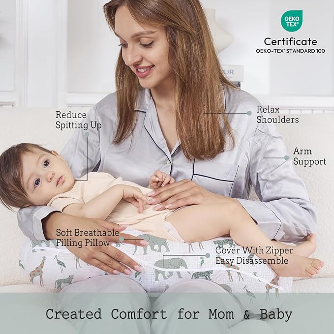 - 【COMFORT SUPPORT】Designed for Infant feeding, Our cotton nursing pillow provides comfortable support during breastfeeding or bottle feeding. The nursing pillow relieves pressure on the shoulders and arms while ensuring that the baby does not slip. That creates cozy and safe environment for babies and parents.