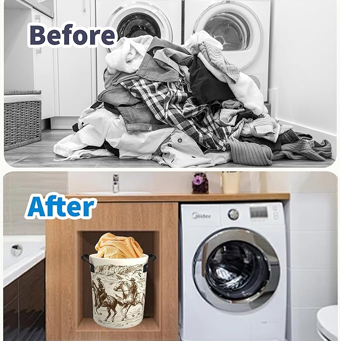 Western Cowboy Laundry Basket Gifts for Boys, Boys' Room Decor Baby Nursery Hamper Western Room Decor 19.6x15.7 Inch