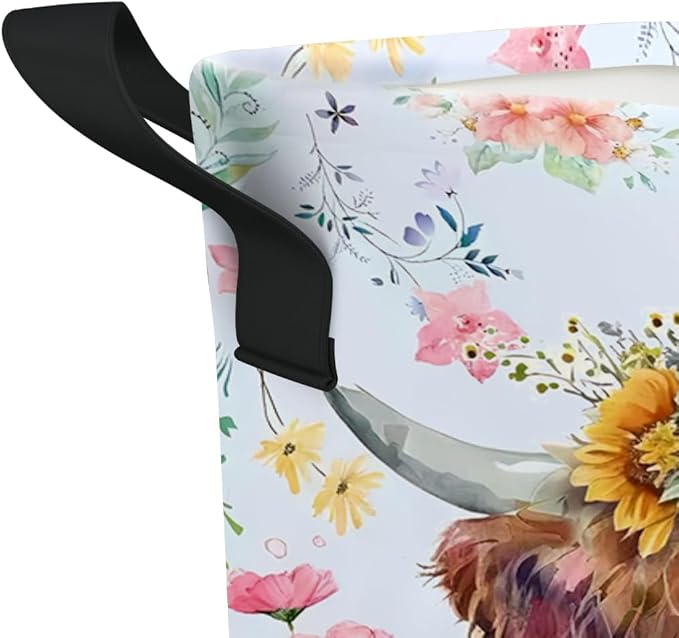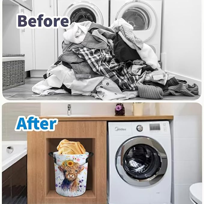 Highland Cow Laundry Basket Gifts for Girls, Girls' Room Decor Baby Nursery Hamper Highland Cow Room Decor 17.7x13.7 Inch