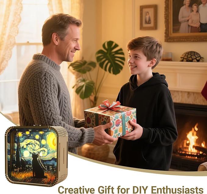- 【Creative Gift for DIY Enthusiasts】This model kit is an ideal gift for any occasion, anyone, such as Christmas or Halloween. This wooden art craft with night light is not noly a toy but also a good desk docor for who loves DIY activity.
