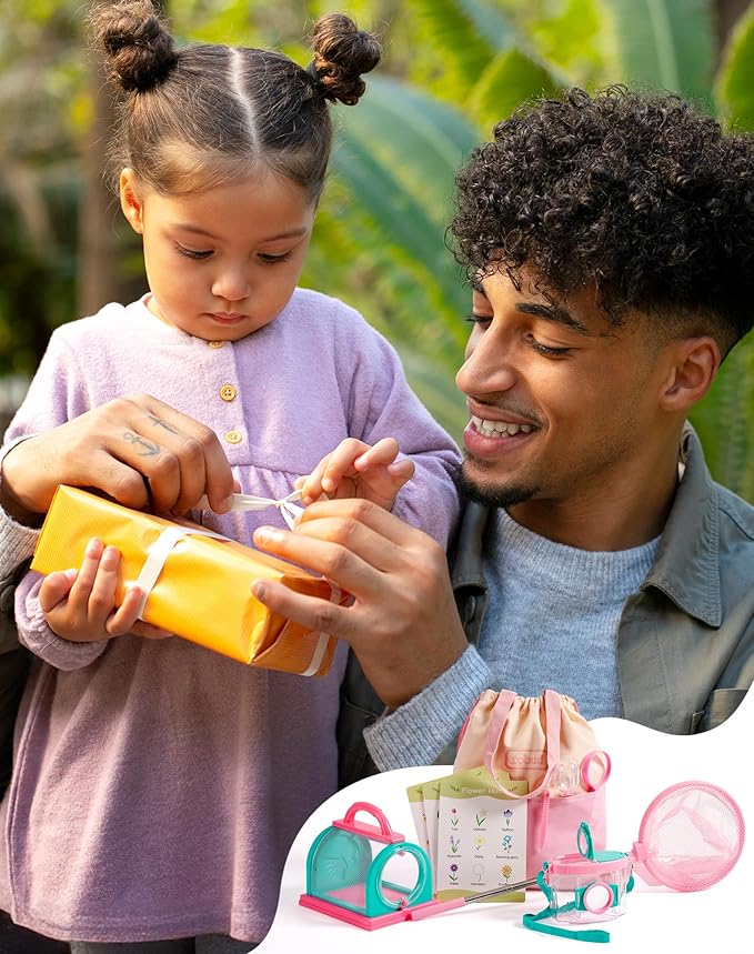 ROBUD Kids Explorer Kit, Bug Catcher Kit with Bag Kit, Pink Outdoor Exploration Set for Camping, Montessroi Toy for Kids Coming Closer to Nature,WRP28