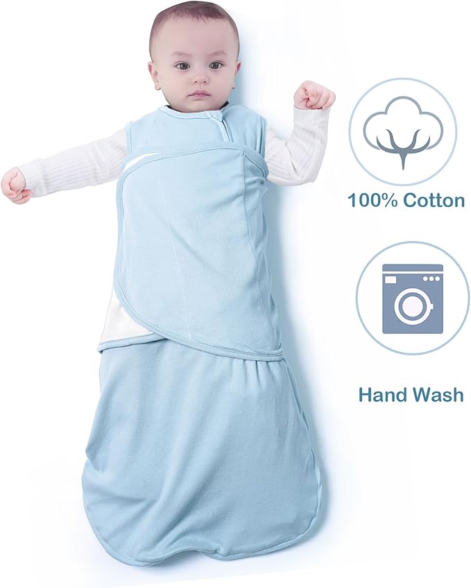 Baby Sleep Sack Swaddle,Swaddles 3-6 Months,3-Way Adjustable Wearable Transition Blanket Boy And Girl,100% Cotton,TOG 1.0(Cyan)