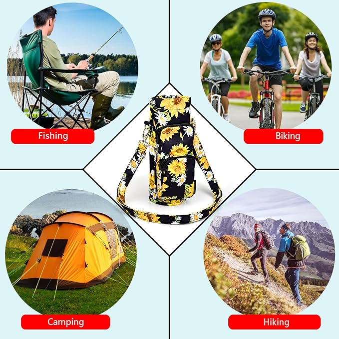 - PRACTICAL FEATURES;The bag can press the buckle to adjust tightness and fit bottles of different sizes,With a adjustable and removable strap,It is widely used for commute,hiking, cycling, camping, travel, or even if you're at the beach, sports events