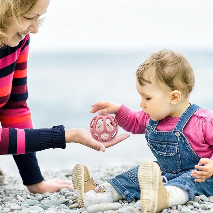 - 【Easy to Grasp & Hold】Designed with tiny hands in mind, this baby ball toy features a size and finger holes that's easy for infants to grasp, promoting motor skill development and sensory exploration. All teether balls do not have small part plugs to avoid the danger of choking hazard. Weight: 76g/2.68oz