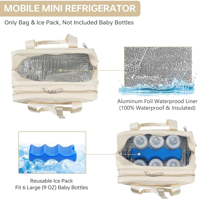 - MORE PRACTICAL: Our bottle bag for daycare is designed for maximum convenience, It features a detachable buckle top handle can to attach to a stroller, Additionally, pump bag comes with a PEAV waterproof mat and an ice pack