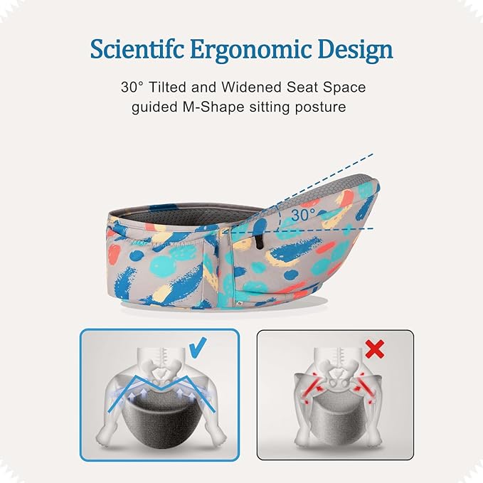 - 【Safety and Ergonomically Designed】Your baby's safety is our top priority. The anti-fall safety belt is designed to secure your toddler in place, wrapping snugly around their abdomen to prevent any accidental falls. The waist stool is ergonomically designed. The seat is angled with 30 degrees, providing a more comfortable seating experience. The core of the stool is lightweight, conforming to your baby's natural sitting posture. The seat is also thickened and ensure a non-slip surface