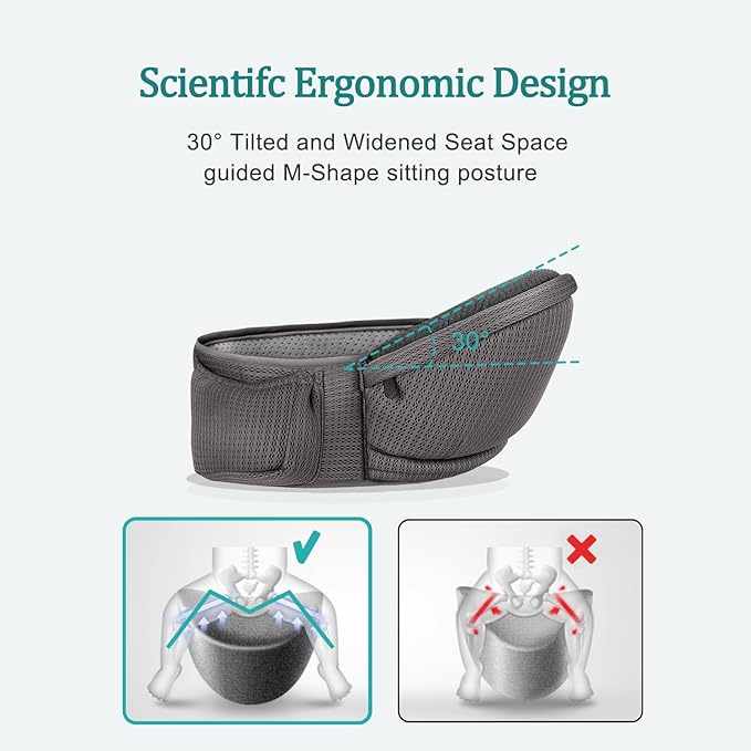 - 【All-Day Comfort】Made with soft, breathable polyester, this baby hip carrier ensures all-day comfort for your little one. Designed to evenly distribute weight across your hips and lower back, it reduces strain and supports extended wear for parents