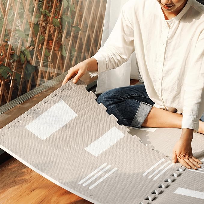 - FLEXIBLE SIZING & SPACIOUS ROOM TO GROW – Easily expand the play mat by combining additional sizes designed with interlocking puzzle pieces. See our Play Mat Sizing Guide to properly order for the size of your play space. Our playmats can grow with your child from newborn through toddler years, supporting healthy development milestones while giving them the freedom to move and explore. This baby floor play mat provides ample space to grow from tummy time to first steps, and active play sessions.