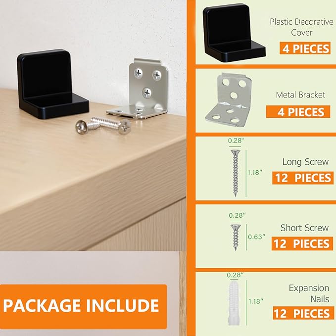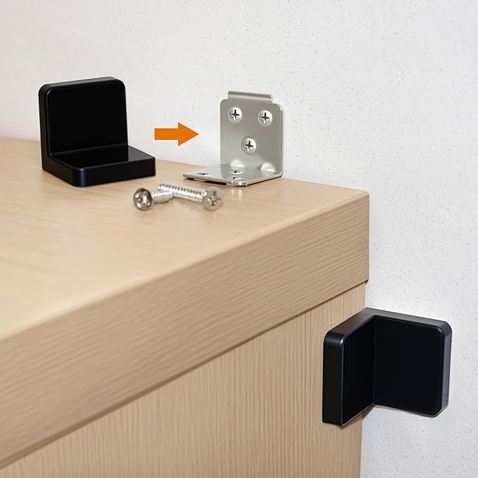 - 【Easy Installation】: Our bookcase anchors come with plenty of kit screws for quick installation. The anchors have pre-drilled holes for easy attachment to wall, including concrete drywall.Simply mount these dresser anchors on a clean, smooth surface. Plus, they're removable for added convenience