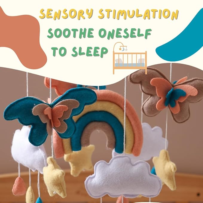 - Supports Visual and Sensory Development While this mobile is visually stunning, it also serves a developmental purpose. The gentle movement of the leather stars, felt clouds, and butterfly captures your baby’s attention, helping to improve their focus and visual tracking skills. The soft, rhythmic motion of the mobile creates a calming effect, making it an ideal sleep aid for your newborn as they drift off to peaceful slumber.