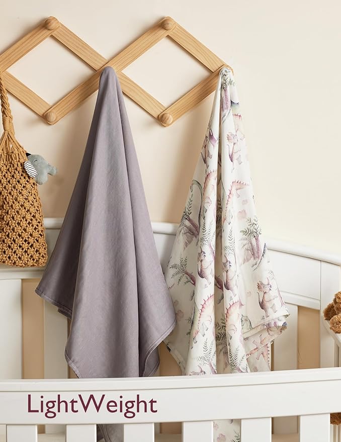 Momcozy Muslin Swaddle Blankets, Ultra Soft Neutral Registry Essentials, Jungle Dinosaur, Breathable Large 47'' x 47'' Newborn Boys Girls Receiving Blanket