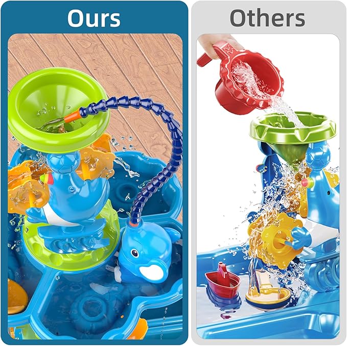 - Water Table Pump: Our water play table toy has a twistable and rotating water pump with waterproof design, which circulate water from bottom to top, enjoy the fun water flowing. Stimulate kids' imagination and enable learn through playing water table