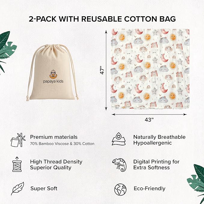 - GENTLE ON SKIN, ECO-FRIENDLY CHOICE – Made from Soft Viscose derived from Bamboo, a renewable resource, these muslin blankets are naturally breathable, ultra-soft, and safe for delicate newborn skin—perfect for eco-conscious families.