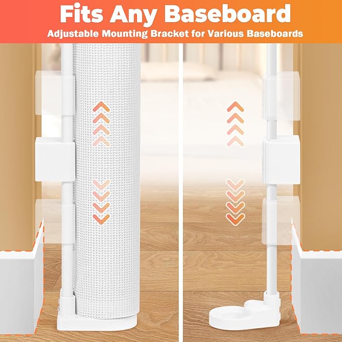 - 【Easy Installation Design】 Our upgraded design features movable brackets on both ends, allowing it to adapt to different baseboard heights. This eliminates the hassle of having to extend the mesh to position it for installation. (Note: For enhanced safety and stability, drilling is required for installation.)