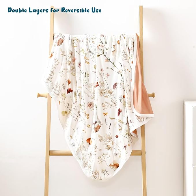 - Double Layer: Double layer in medium weight is perfect for all seasons. Measures 34" W x 44" L is great as a swaddle or infant swaddle wrap in cold season and make it as a quilt and play mat in the hot season. The blanket will bring a comfortable sleeping temperature to your baby.