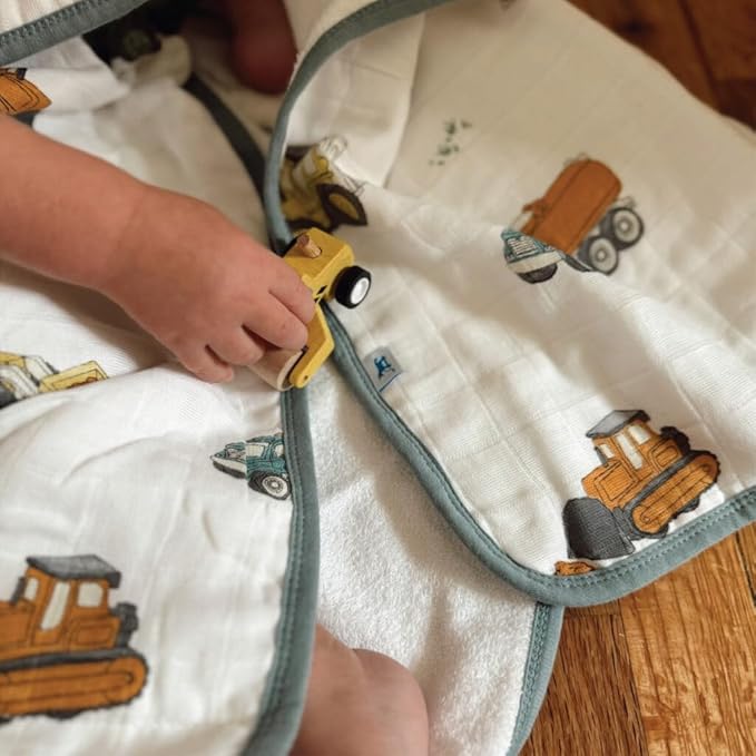 Little Unicorn Premium Hooded Bath Towel| Absorbent Cotton & Terry Blend | Larger Size, 1-6 Years (Work Trucks)