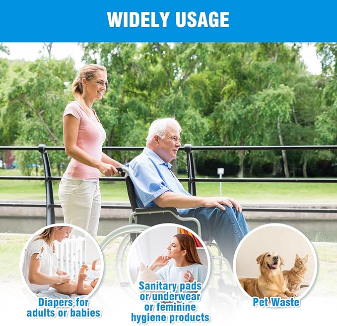 - 【Widely Usage】The colorful diaper trash bags scented garbage bags can be used around the home, office, classroom, school, hospital, nursing home or on travel. These odor-proof plastic garbage bag refills fit for the disposal of adult Incontinence Odor/sanitary pads/napkins and underwear, adult diapers, feminine/hygiene and incontinence products,overnight pads. You can carry these discreetly in your (diaper) bag.It is thick and durable to give you tidy life , confidence and peace of mind everywhere. Also great for big dog poop, stinky diapers, dirty cat litter etc.