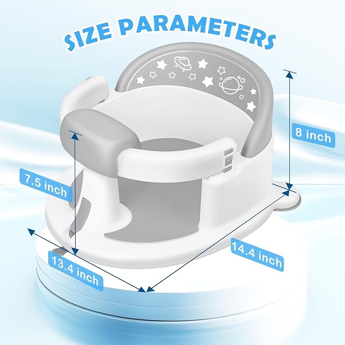 - 3 Free baba bath toy,add more bathing fun!Designed for infants 6 months and up, our baby bath seat offers both fun and convenience during bath time. Free up mom's hands, allowing for a more relaxed and enjoyable interaction with your child.