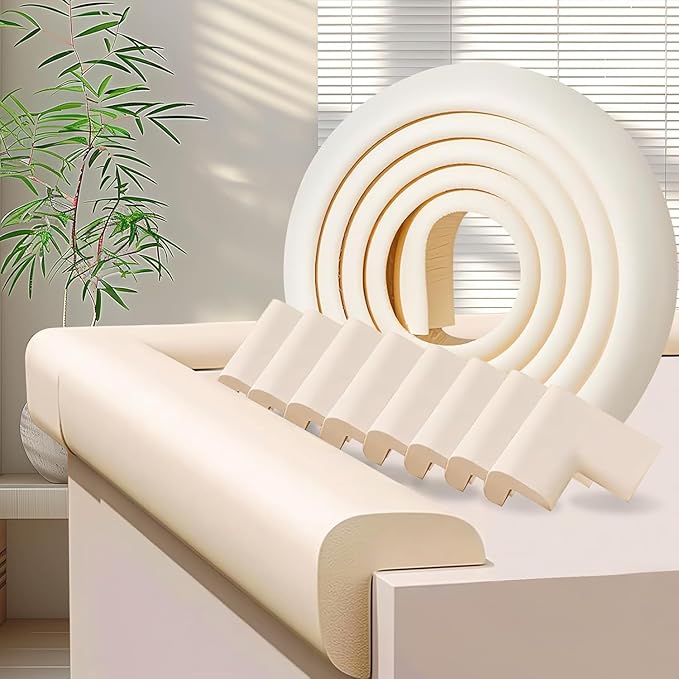 - PACKAGE CONTAINS - Includes 1 roll of foam anti-collision tape and 8pcs corner guards (baby-safe design), using industrial-strength self-adhesive. ensures both secure attachment and hassle-free installation, providing comprehensive anti-collision protection for home furniture edges and corners.