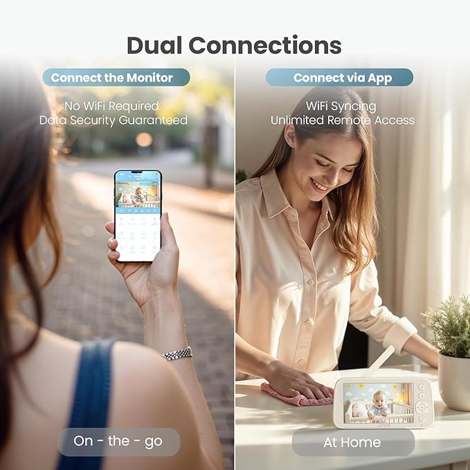 litokam 4MP Baby Monitor with Camera and Audio, 5-inch 1080P Split-Screen, No WiFi & 5G/2.4G WiFi, Remote Pan-Tilt-Zoom, Night Vision, VOX, Temperature Sensor, 2-Way Talk, 7 Lullabies, 1000ft Range