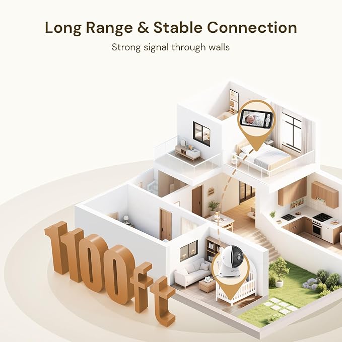 - High-Grade Security with No WiFi Connection: Unlike outdated FHSS systems, Leviewlity video baby monitor No WiFi uses HyperConnect technology to deliver 1100ft ultra-stable signal with zero lag - 3x more reliable than standard monitors. The rock-solid connection for uninterrupted nursery monitoring. Our closed-loop system blocks hackers with high encryption, giving parents priceless peace of mind