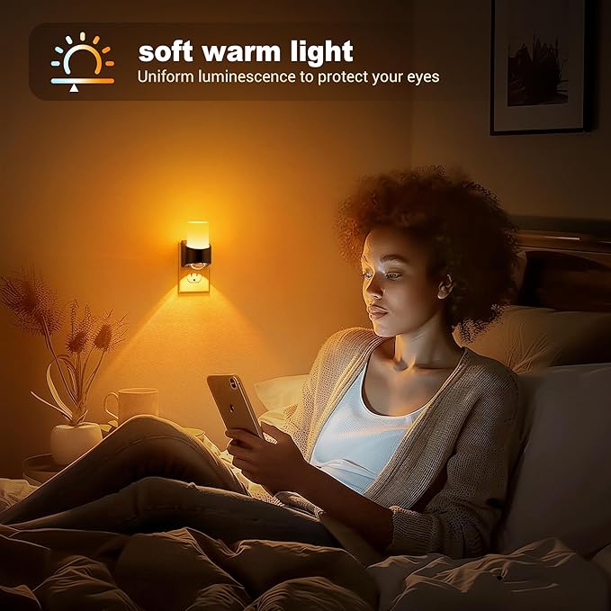 - Adjustable Brightness for Every Need - Enjoy three levels of brightness (10%-50%-100%) to suit any occasion. Whether you need a dim glow for bedtime, a moderate light for hallways, or full brightness for nighttime tasks, this amber nightlight adapts effortlessly.