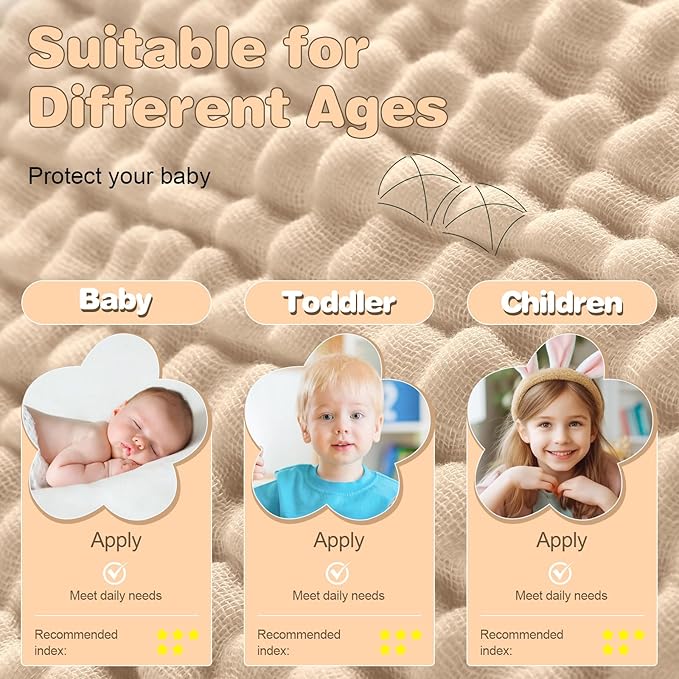 - PREMIUM MATERIAL: Made from soft and absorbent muslin cotton that's gentle on baby's delicate skin and gets softer with each wash