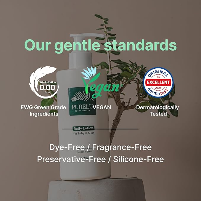 PURELU Baby Lotion For Newborn, Toddler Lotion, Vegan Body Lotion For Sensitive Skin, Baby Skin Care, Hypoallergenic Fragrance Free (10.14 Fl Oz / 300ml)