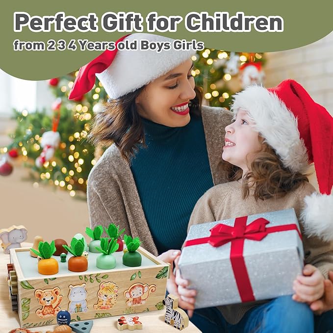 - 【9-in-1 Wooden Montessori Toys Set】Unbeatable value packed in one box! Perfect gifts for one year old boys & girls (1-4 years). Includes: 13 animal blocks, 6 carrots, 5 worms, mushrooms + activities: fishing, gear play, shape sorting, number learning. Combines montessori toys for toddlers, pretend play, and matching toys – replaces multiple single toys! Safe wooden toys for 1+ year oldwith non-toxic UV paint (EN71-3/ASTM certified). Ideal educational toys for 2+ year old to boost motor skills & cognition.