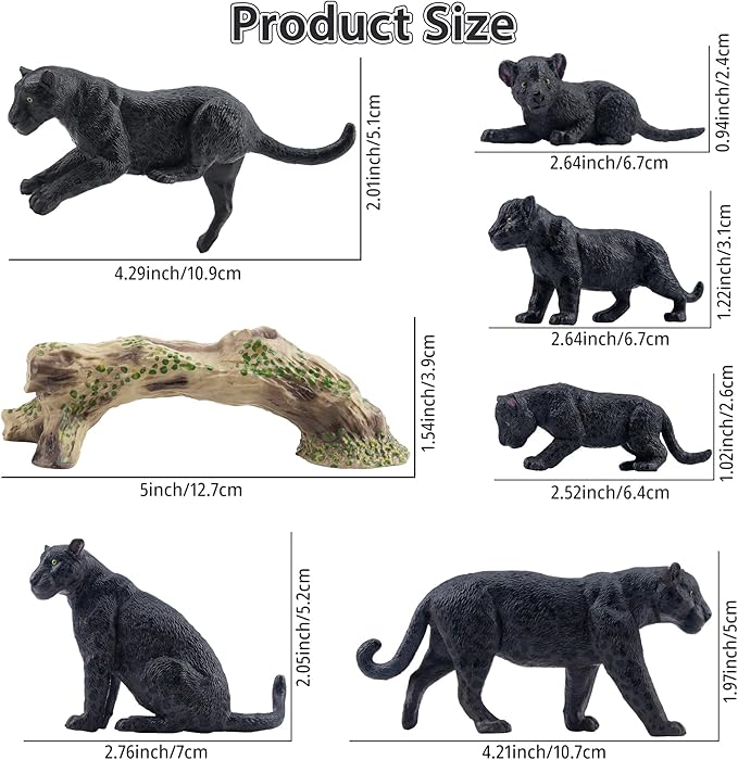 - PANTHERS ANIMALS FAMILY GATHERING: TOYMANY 7PCS Jaguars Family Playset includes 3 jaguars, its 3 cubs and tree trunk. Kids would like to be the host to hold a family gathering with them.