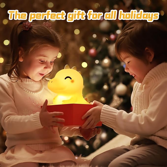 - Perfect Dinosaur Gifts for Kids:Looking for the ideal gift for a young dinosaur enthusiast? The Huggwaii squishy dinosaur night light for kids is the perfect gift for birthdays, Easter, holidays, or any special occasion. Its adorable design and sleep aid features make it a thoughtful and practical gift that both parents and kids will love. This versatile dinosaur night light for kids is also great for nursery decor, playrooms, or camping trips. All in all, the dinosaur kids night light is an adorable gift suitable for boys, girls, nursery, moms, lovers, family members, and friends.