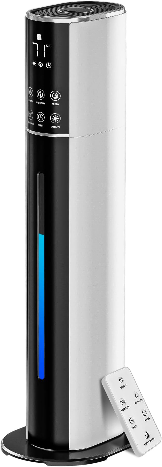 - 【Silent And Powerful】- The maximum operating sound is less than 35dB, all lights can be turned off in sleep mode, you and your baby can have a whisper quiet sleeping environment, humidify your bedroom without interrupting your sweet dream. 1-12 hours Timer function for setting the running period, Equipped with a user-friendly touch screen and remote control, it's effortlessly operable for users of all ages.