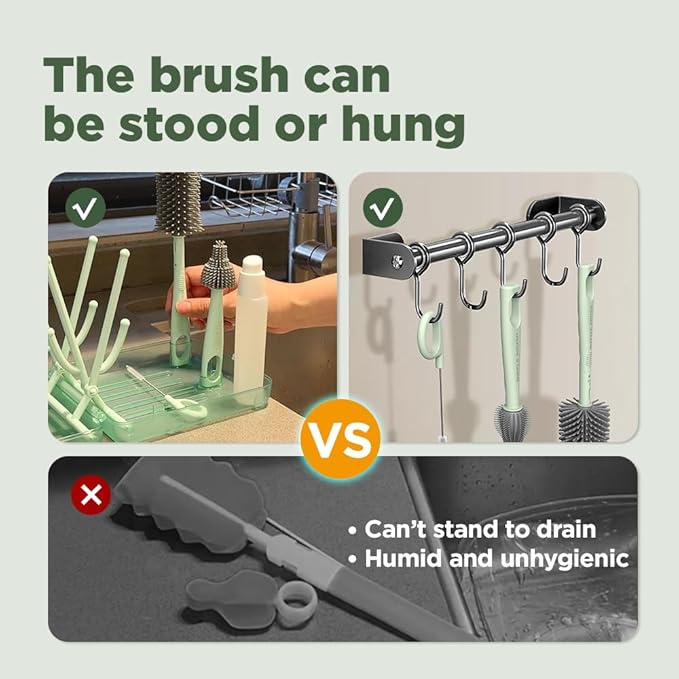 - 【Organized & Hygienic Storage】Brushes store neatly inside the rack for air-drying, keeping your portable bottle brush clean and ready for use—ideal for moms on the go.