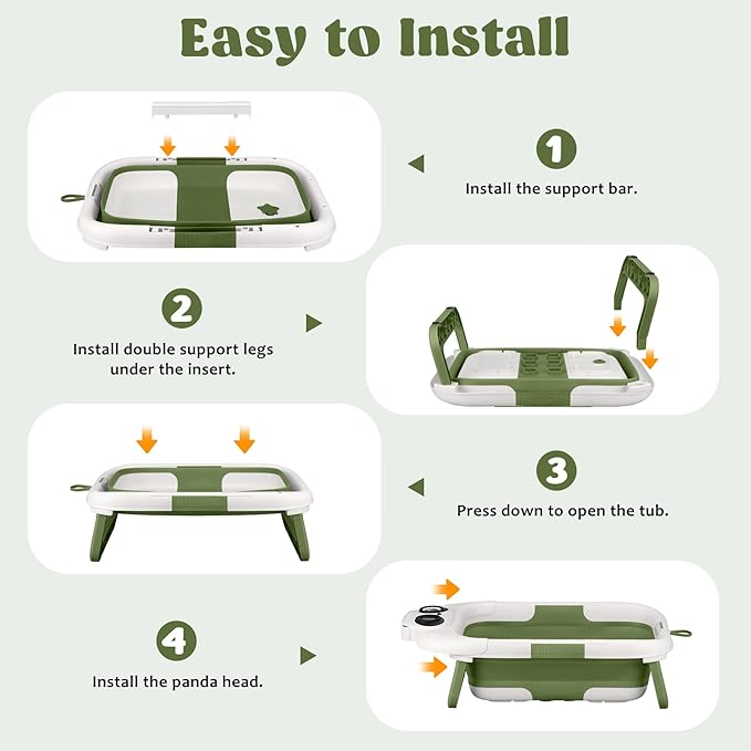 Collapsible Baby Bathtub for Newborn to Toddler, Portable Baby Bath Tub with Floating Cushion and Thermometer, Infant Bathtub for 0-24 Months(Green)