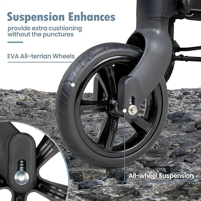 - Comfortable and Safe Design: The toddler wagon stroller featuring 5-point safety harnesses to ensure children's safety, and the seats are padded with foam to make babies sit more comfortably during the ride. The high seats design gives babies more foot space and won't make them feel cramped. Enlarged foot brakes to prevent the wagon from rolling away when parked, safeguarding your kids in all aspects