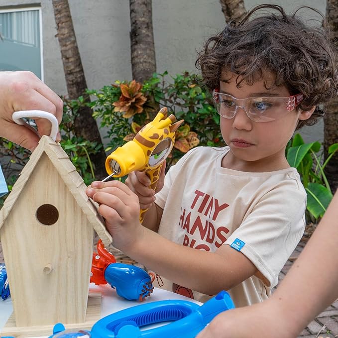- Real Hammer, Designed for Kids – Meet Stretch the Giraffe! Unlike toy hammers, this real metal hammer head allows young makers to experience real DIY projects safely—helping them develop hand-eye coordination, problem-solving, and confidence.