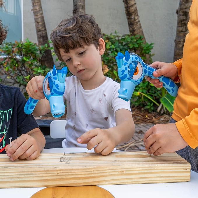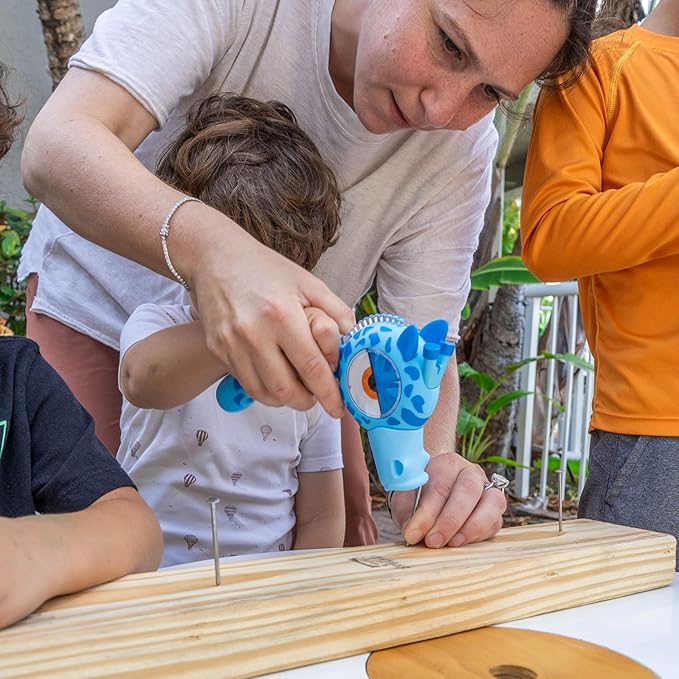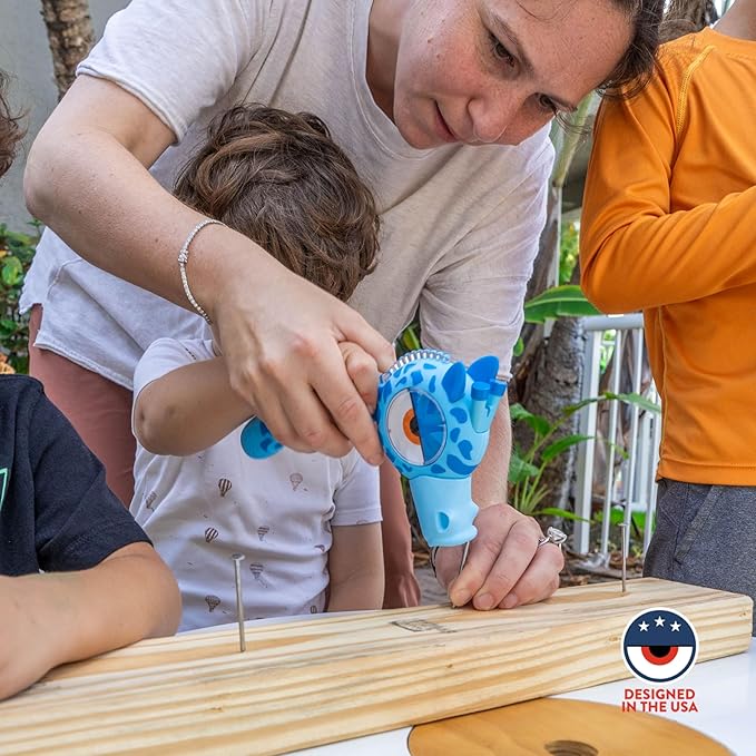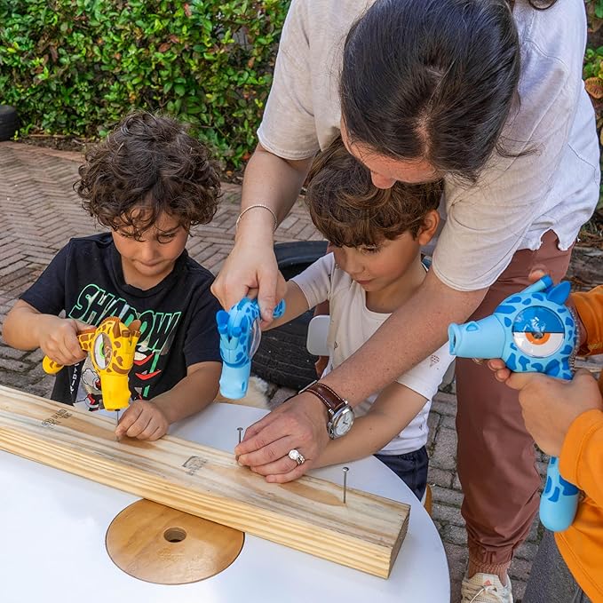 - Real Hammer, Designed for Kids – Meet BamBam the Giraffe! Unlike toy hammers, this real metal hammer head allows young makers to experience real DIY projects safely—helping them develop hand-eye coordination, problem-solving, and confidence.