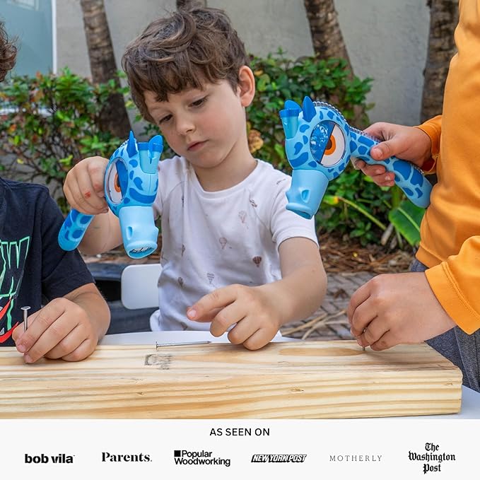 - Patented Safety Mouth Sleeve – PROTECTS LITTLE FINGERS! – Our exclusive, patent-pending soft mouth sleeve acts as a built-in safety guard, reducing the risk of finger injuries while hammering. It’s the perfect balance of real functionality and kid-friendly design.