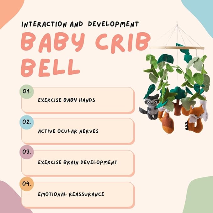 - Whimsical Forest Adventure: Transform your baby’s nursery into a magical woodland with this delightful forest-themed crib mobile. Featuring charming creatures like a bear, giraffe, elephant, and more, this mobile is designed to ignite your little one's imagination while bringing the peaceful beauty of the forest to their space.
