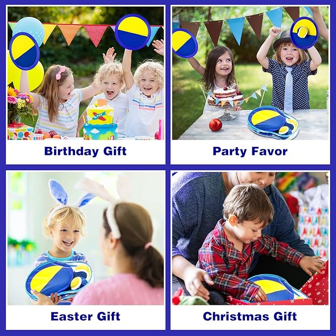 - Ideal Gift for Toddlers Kids and Teens - The paddle ball set includes 2 paddles, 2 sticky balls and a storage bag. It's a perfect birthday easter basket stuffers and Valentine Day gifts for toddlers kids teens
