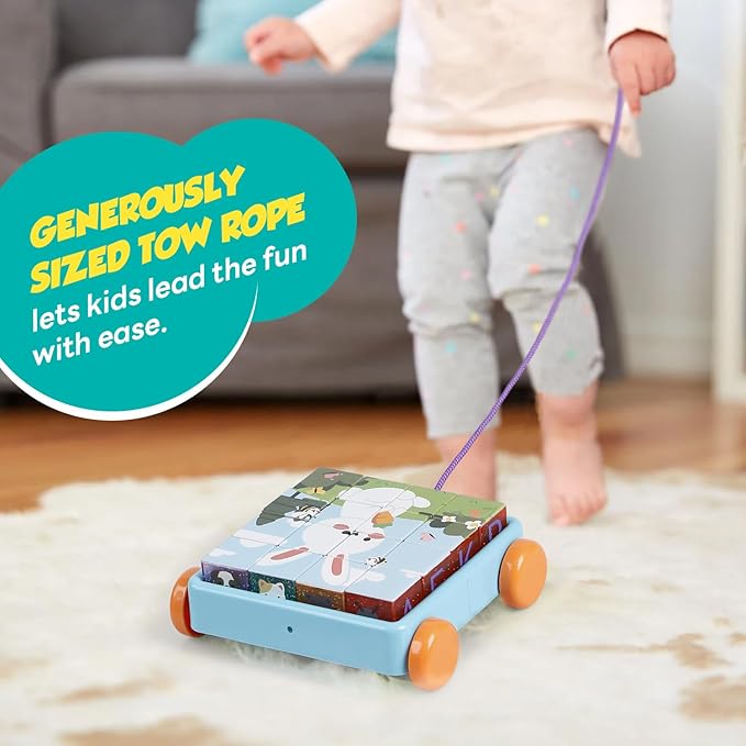 - Includes Pull-Along Storage Cart – Comes with a cute *2-meter rope pull cart* that holds 16 blocks. Toddlers can drag toys around or use it for tidy storage—playtime meets organization!