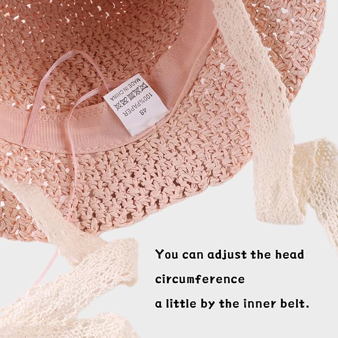 - MATERIAL:100% Natural paper straw.Straw is a lighter and breathable material that allows heat to escape and air to flow,great for summer wear.This baby girl sun hat is well made thick and tightly woven and you can’t see through it.It is comfortable and skin-friendly.